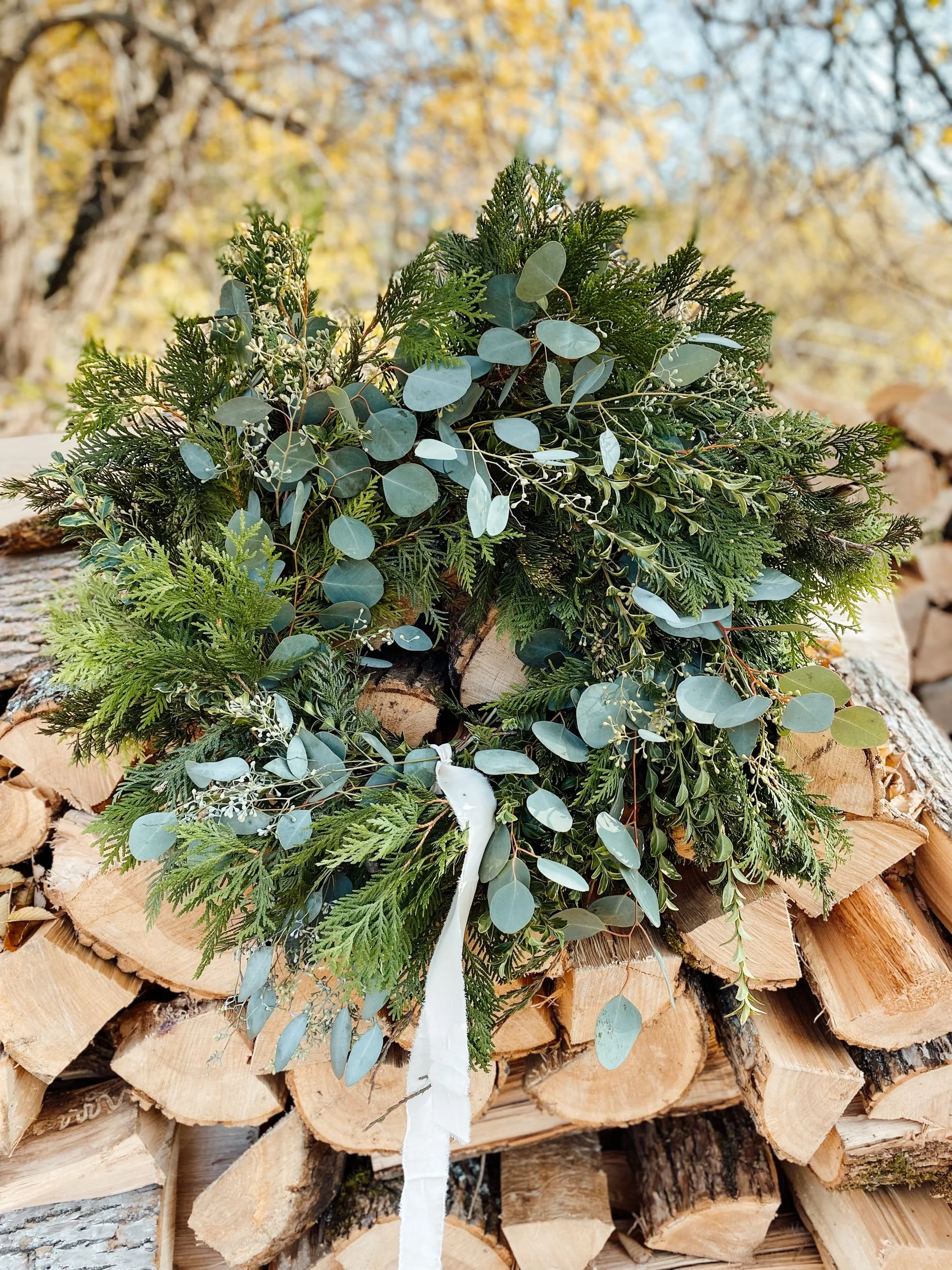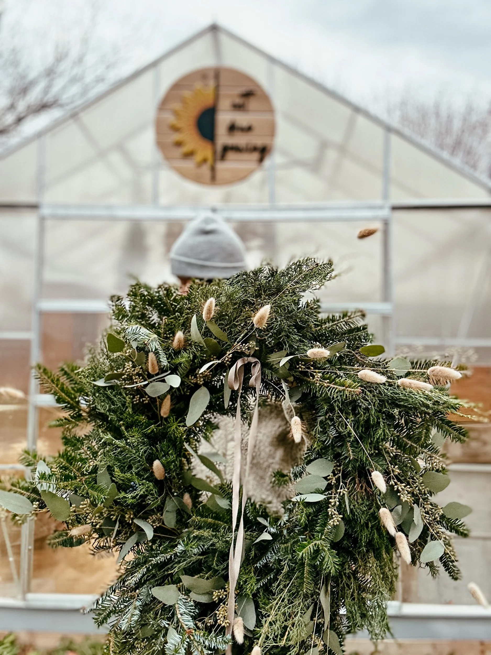 Custom Fresh Winter Wreaths using local and natural ingredients.